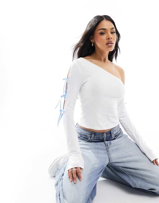 ASOS DESIGN - Top asymétrique avec détail nœud - Blanc