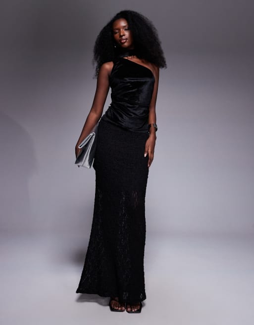 ASOS DESIGN - Top asymétrique cintré en velours à détail foulard - Noir