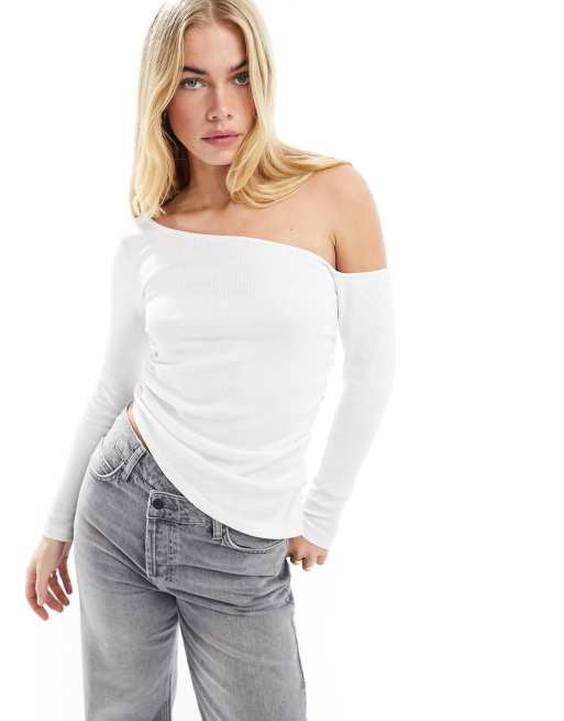 ASOS DESIGN - Top asymétrique côtelé effet drapé - Blanc