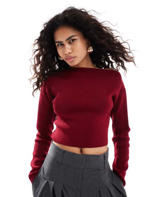 ASOS DESIGN - Top asymétrique en maille structurée - Bordeaux