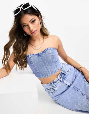 ASOS DESIGN - Top bandeau d'ensemble en jean délavé