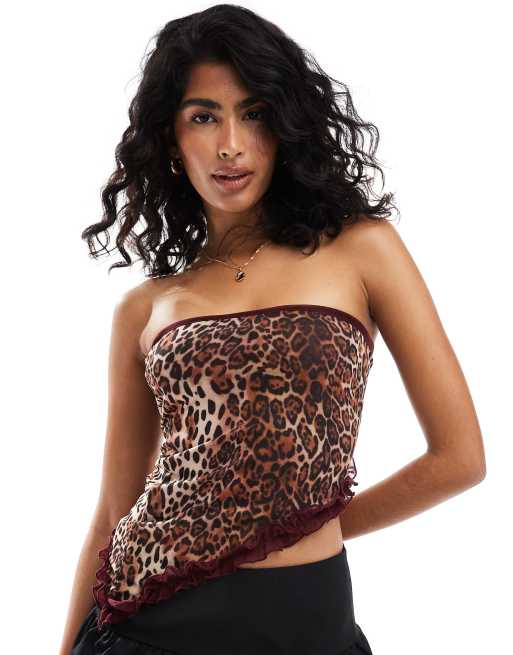 ASOS DESIGN - Top bandeau effet superposé en tulle imprimé léopard - Marron