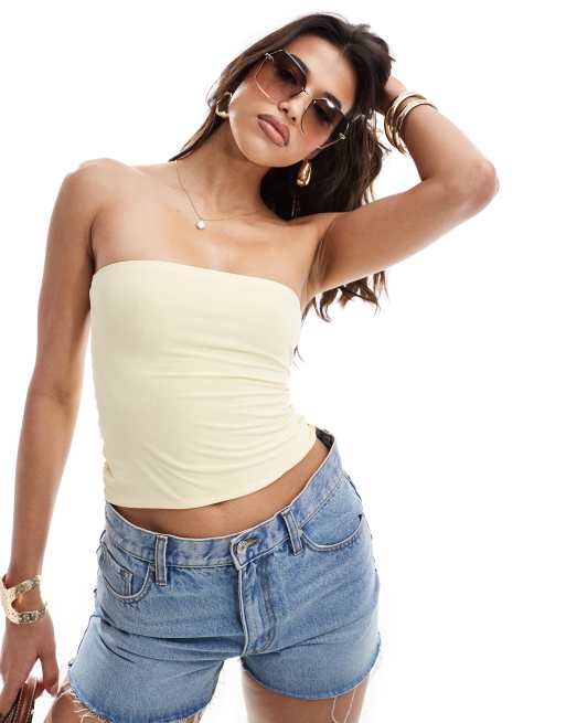 ASOS DESIGN - Top bandeau près du corps double épaisseur - Babeurre