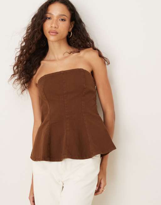 ASOS DESIGN - Top bandeau structuré en denim avec ourlet à basque - Chocolat