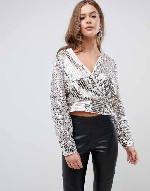 ASOS DESIGN - Top cache-cœur orné de sequins à manches longues chauve-souris