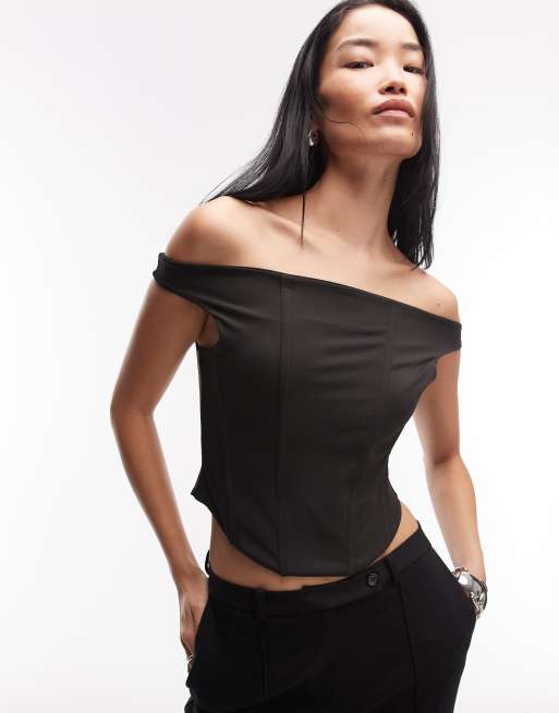 ASOS DESIGN - Top corset sculpté à encolure bardot et armatures - Noir