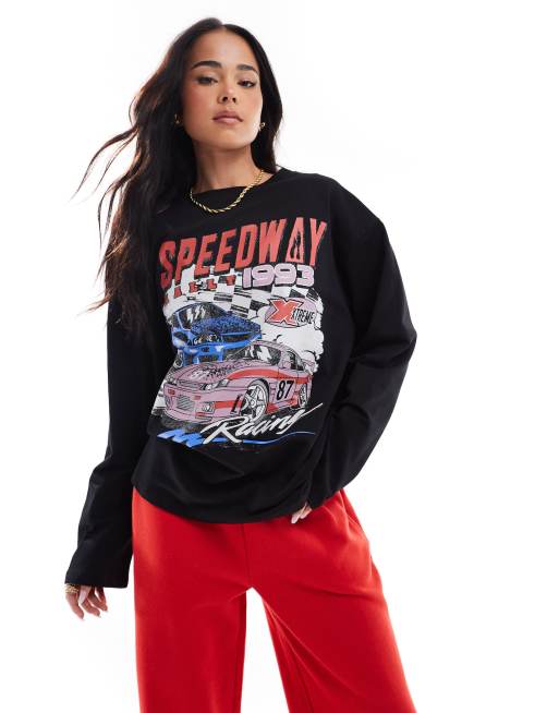 ASOS DESIGN - Top coupe skateur à manches longues avec motif voiture - Noir