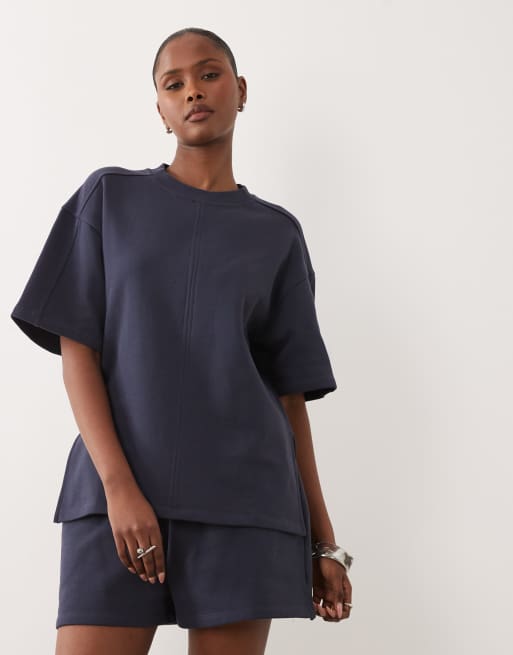 ASOS DESIGN - Top d'ensemble à manches courtes et envers brossé - Bleu cendré