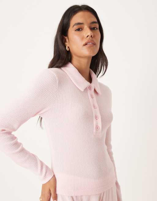 ASOS DESIGN - Top d'ensemble côtelé effet brossé à manches longues - Rose