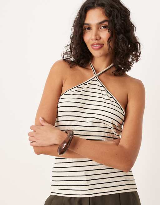 ASOS DESIGN - Top d'ensemble dos nu à rayures - Crème
