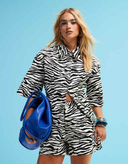 ASOS DESIGN - Top d'ensemble en jean à manches courtes et taille cintrée - Imprimé à zébrures