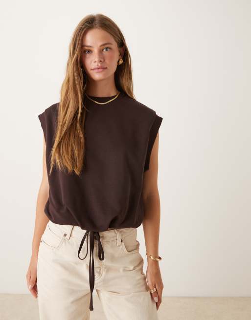 ASOS DESIGN - Top d'ensemble en molleton avec ourlet bouffant à cordon de serrage - Marron foncé
