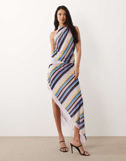 ASOS DESIGN - Top d'ensemble en mousseline stretch imprimée à rayures avec encolure nouée