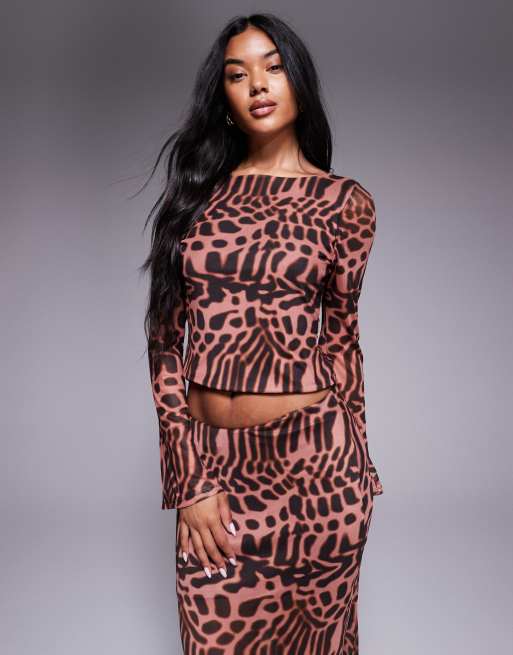 ASOS DESIGN - Top d'ensemble en tulle avec manches évasées - Imprimé animal