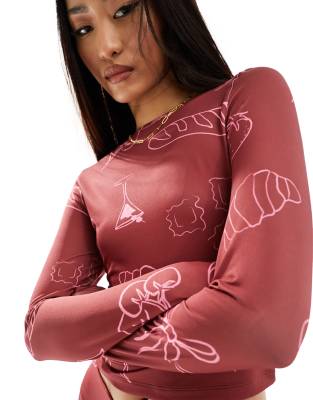 ASOS DESIGN - Top d'ensemble imprimé à encolure bateau - Rouge