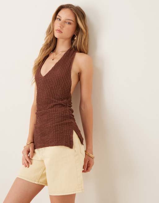 ASOS DESIGN - Top d'ensemble texturé à dos nu - Marron