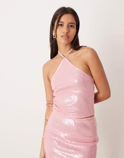 ASOS DESIGN - Top dos nu d'ensemble en tulle à sequins - Rose