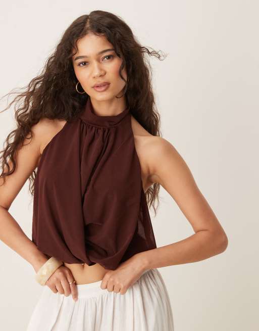 ASOS DESIGN - Top dos nu drapé - Chocolat