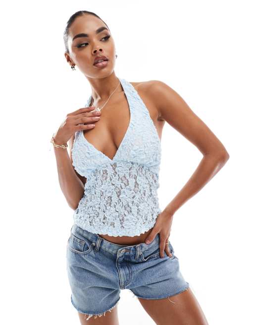 ASOS DESIGN - Top dos nu en dentelle texturée - Bleu pastel