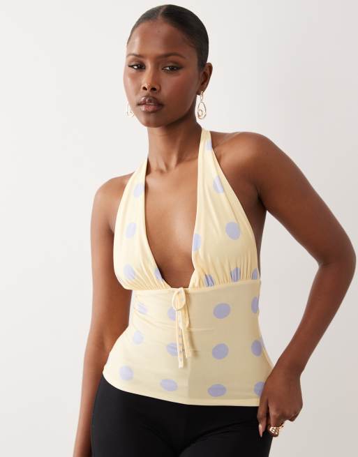 ASOS DESIGN - Top dos nu près du corps d'ensemble à pois - Citron et bleu