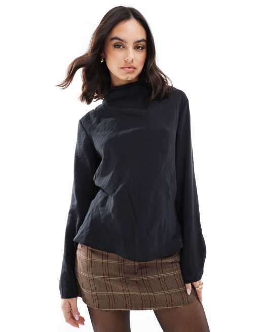 ASOS DESIGN - Top doux au toucher noué à la taille avec col bénitier - Noir