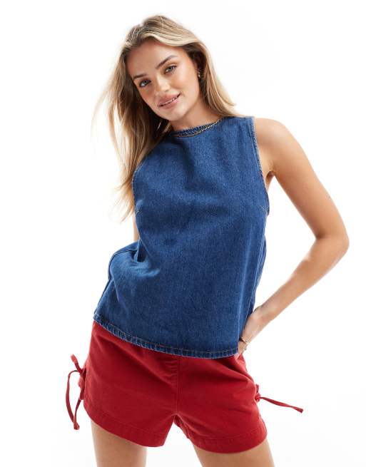 ASOS DESIGN - Top en denim à nœud dans le dos - Indigo