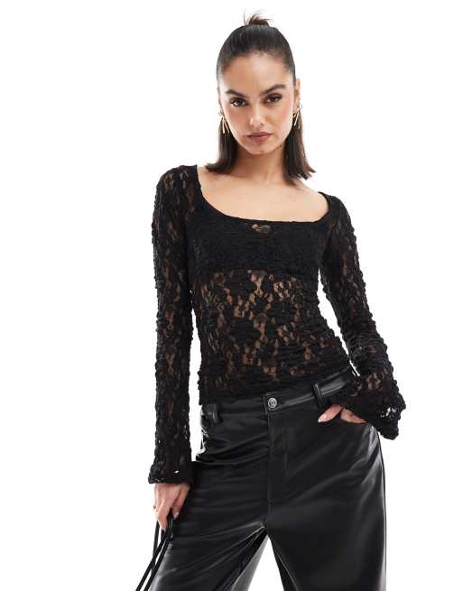 ASOS DESIGN - Top en dentelle à encolure carrée - Noir