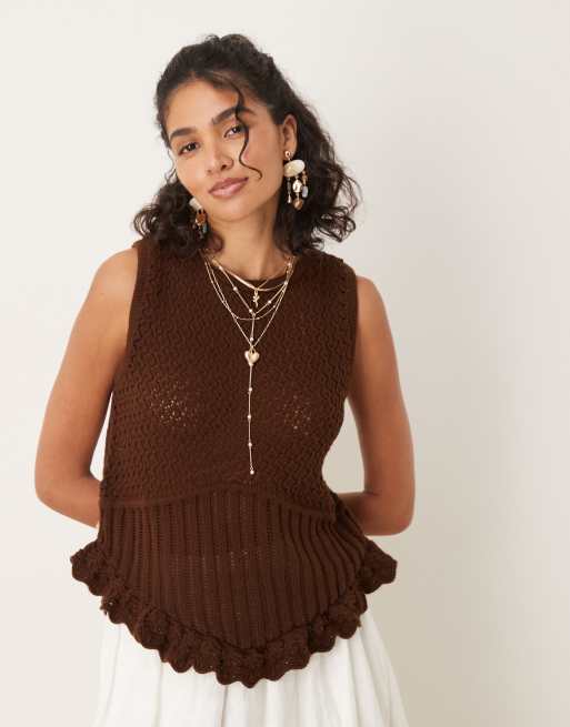 ASOS DESIGN - Top en maille crochetée - Marron