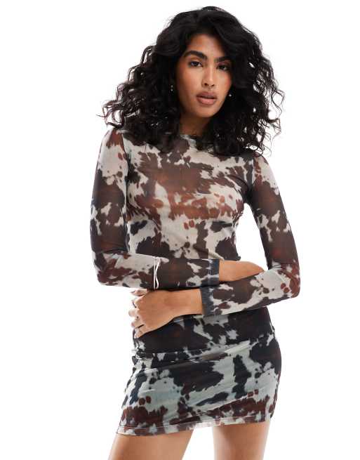 ASOS DESIGN - Top en tulle à encolure bateau et imprimé vache - Marron