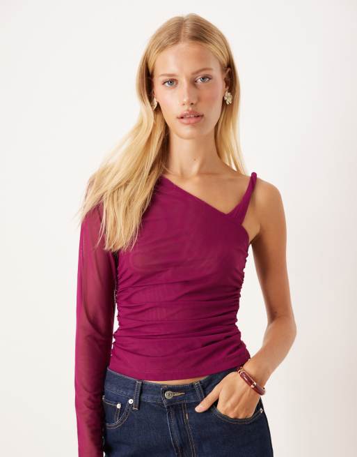 ASOS DESIGN - Top en tulle asymétrique avec bretelle torsadée - Figue
