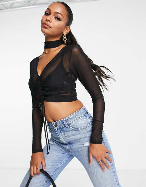 ASOS DESIGN - Top en tulle froncé avec tour de cou - Noir