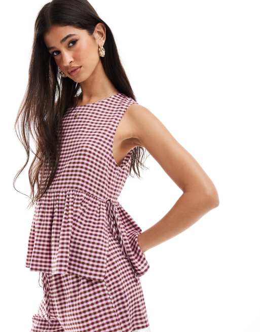 ASOS DESIGN - Top évasé avec liens sur les côtés - Vichy