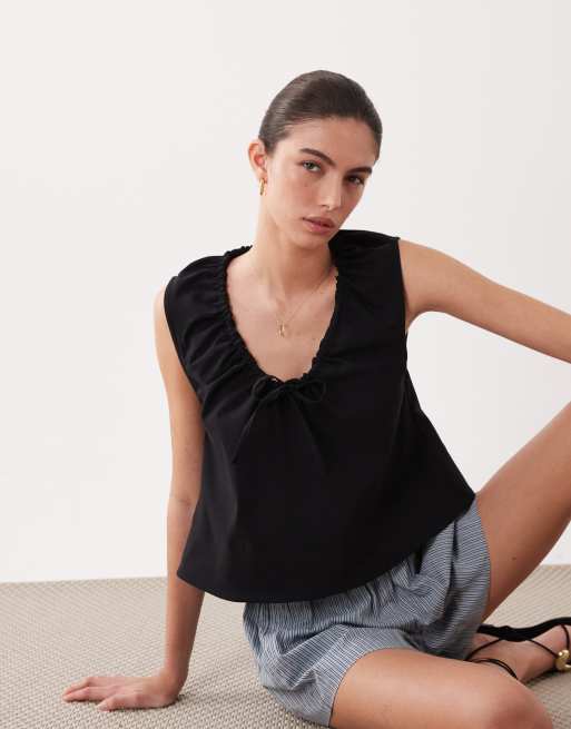 ASOS DESIGN - Top fluide froncé - Blanc