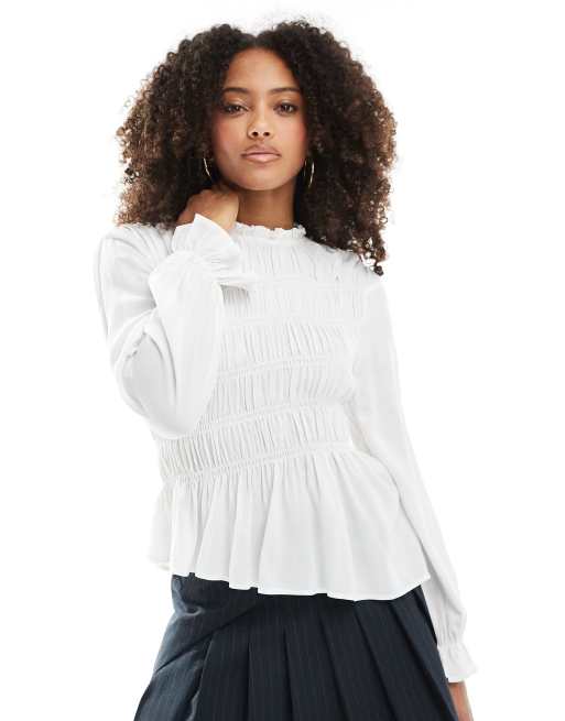 ASOS DESIGN - Top froncé asymétrique à manches longues - Crème