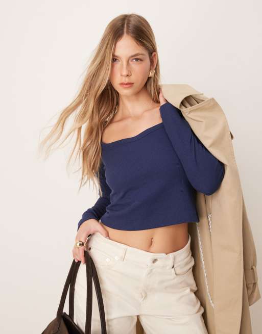 ASOS DESIGN - Top gaufré avec décolleté en cœur - Bleu marine