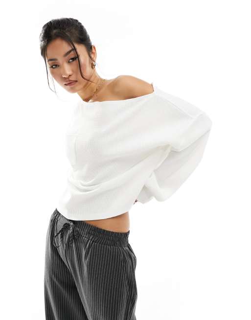 ASOS DESIGN - Top gaufré oversize à épaules dénudées - Ivoire