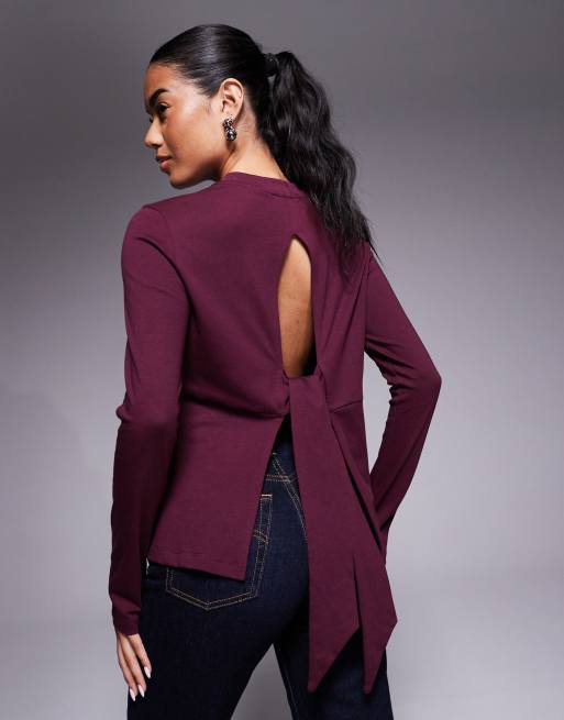 ASOS DESIGN - Top long avec dos ouvert à détail noué - Bordeaux