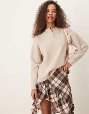 ASOS DESIGN - Top oversize en tissu brossé ultra doux avec col boutonné - Grège