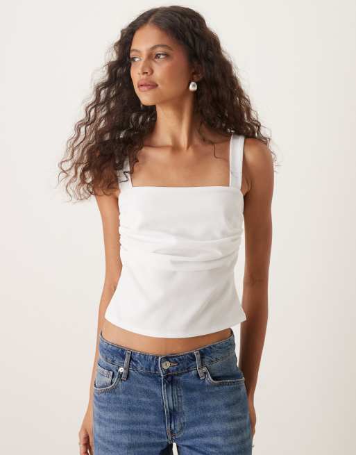 ASOS DESIGN - Top plissé à encolure carrée - Crème