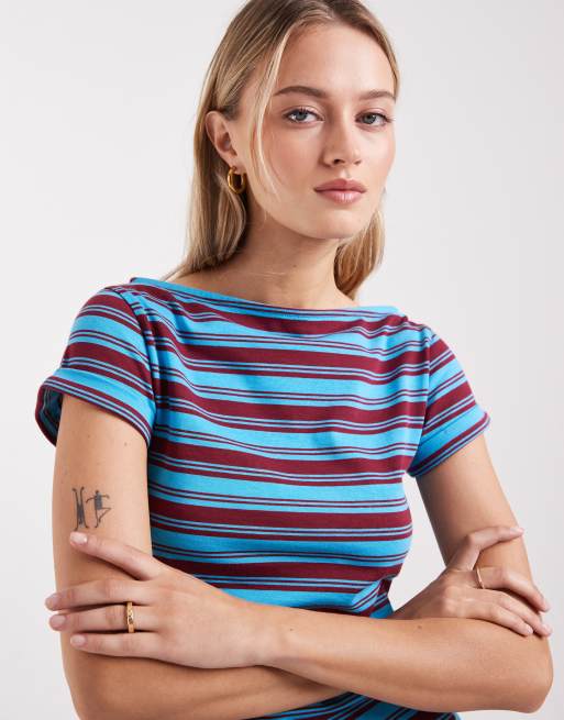 ASOS DESIGN - Top rayé à encolure bateau - Bleu et bordeaux