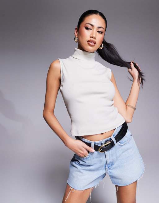 ASOS DESIGN - Top sans manches à col montant - Taupe