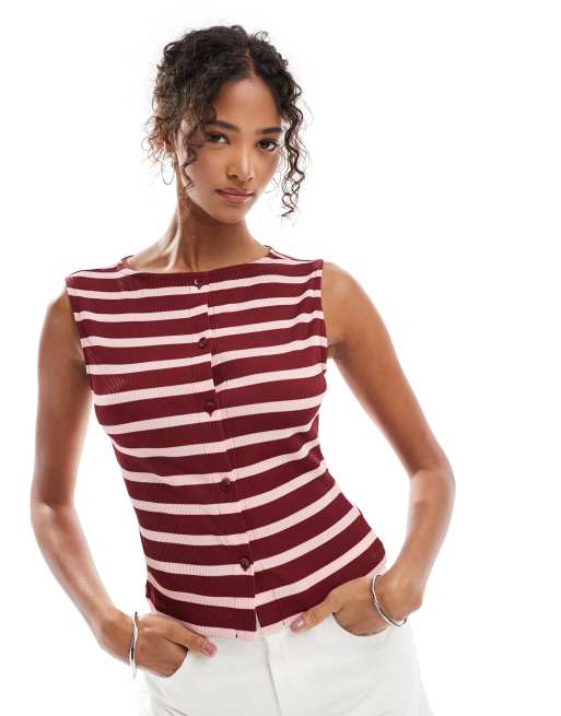 ASOS DESIGN - Top sans manches boutonné à rayures - Rose