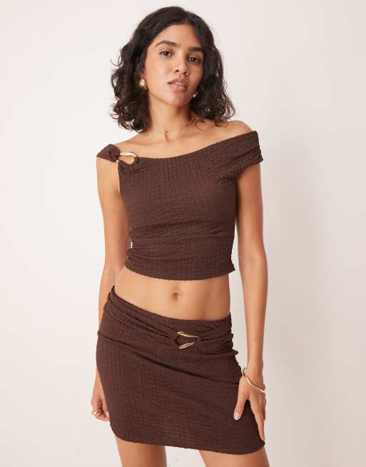 ASOS DESIGN - Top texturé asymétrique d'ensemble avec finition fantaisie - Chocolat