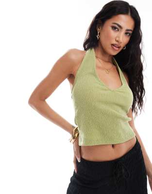 ASOS DESIGN - Top texturé froissé à encolure américaine - Olive