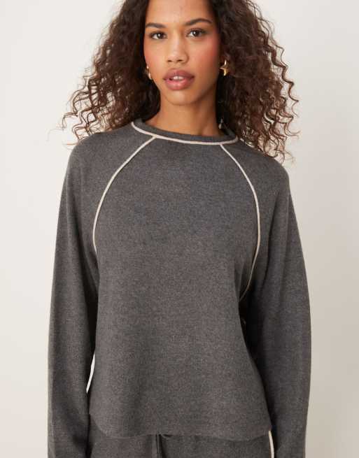 ASOS DESIGN - Top ultra doux ras de cou à manches longues et liserés - Gris