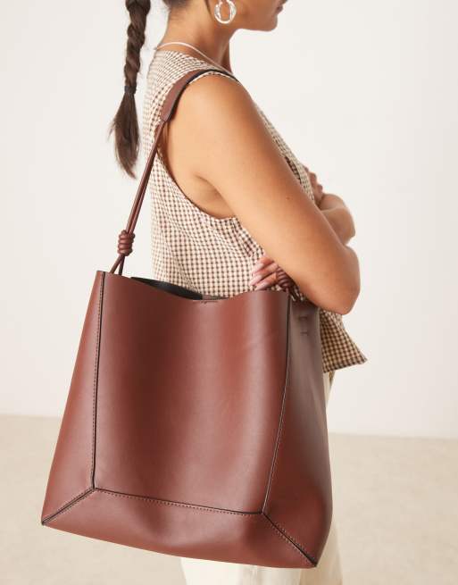 ASOS DESIGN - Tote bag avec empiècements et nœuds à la poignée - Marron