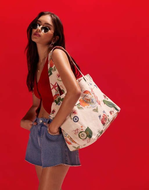 ASOS DESIGN - Tote bag en toile avec imprimé carte postale - Naturel