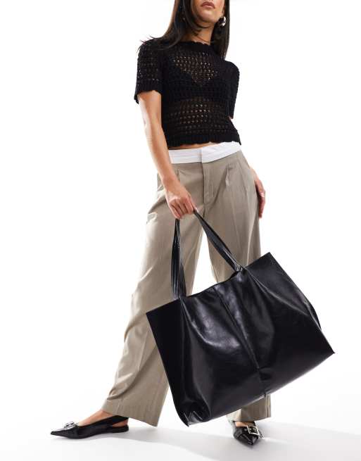 ASOS DESIGN - Tote bag souple avec détail plissé - Noir