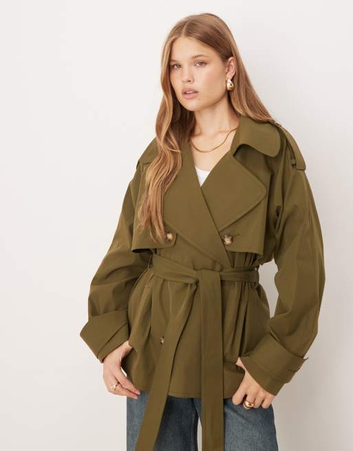 ASOS DESIGN - Trench-coat court oversize avec ceinture - Olive