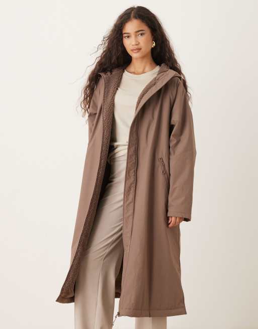 ASOS DESIGN - Trench long avec doublure en polaire - Champignon